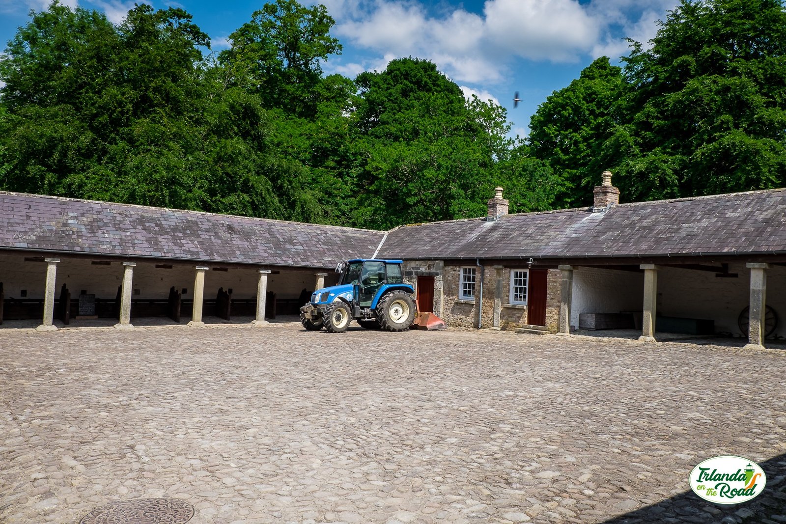 Maestosi alberi secolari circondano la tenuta che paiono essere le “Coldstream Guards” – le guardie che presiedono Buckingham Palace a Londra – che invece di indossare la casacca rossa e il colbacco (bearskill in inglese – pelle d’orso) in testa, sono vestiti di un vivido verde smeraldo.